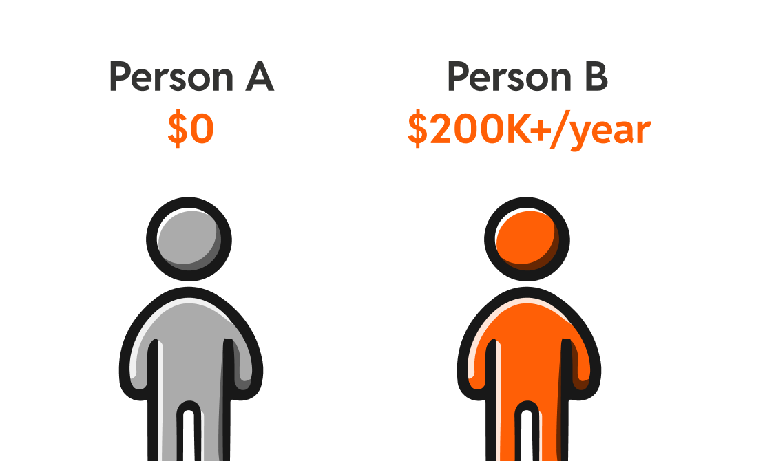 Person A: $5M in index funds and growth stocks. Portfolio income: $0. Remove the W-2 and they start selling assets to live.